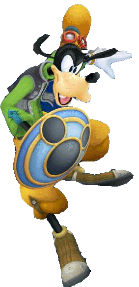 | Goofy returns in Kingdom Hearts 2. Keeping his promise to the King to follow the keyblade Master he helps Sora along the way to fight darkness and the organization. Goofy battale with powerful defense skilland with the help of Goofy, Sora can transform into Brave Form a powerful form use like a limit break. |